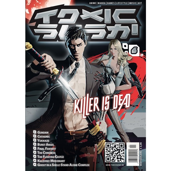 TOXIC SUSHI ist neu, wild und laut und liefert eine optische wie inhaltliche Achterbahnfahrt durch die Bereiche Animes, Lifestyle, Musik und Live-Action-Movies, darüber hinaus bietet das Heft kurzweilige Artikel, die sich mit ungewöhnlichen Künstlern, schrägen Hobbys und ganz generell mit der japanischen Popkultur beschäftigen.